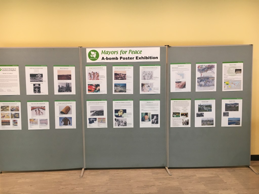 2019年4月25日から5月6日までに行われた2020年の核兵器不拡散条約のレヴュー会合のための2019年準備委員会で、平和首長会議による広島と長崎の原爆投下に関するポスター展が開かれていました。